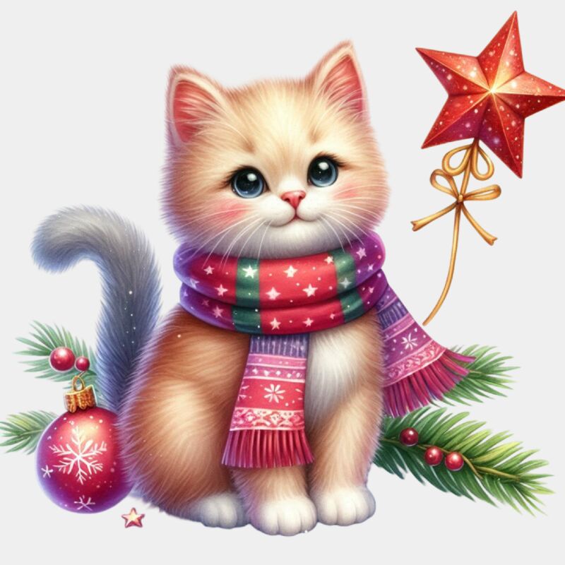 Watercolor-Christmas-Kitten-Clipart-127441905